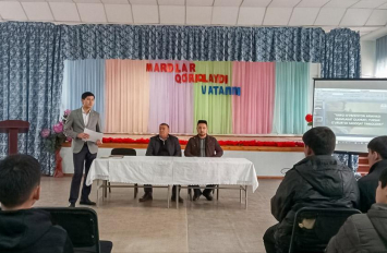 Olmaliq shahar «Hilol» mahalla hududida joylashgan 11-umumiy o‘rta ta’lim maktabida uyushmagan yoshlar va o‘quvchilar ishtirokida «Armiya vatanparvarlik va jasorat maktabi» shiori ostida «Vatan muqaddas, uni himoya qilish sharafli burchdir» mavzusida madaniy-ma’rifiy tadbiri bo‘lib o‘tdi...