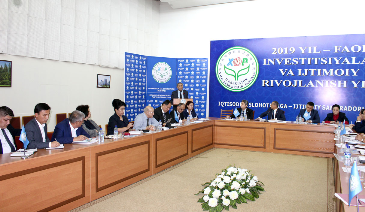 Йиғилишда Олий Мажлис Қонунчилик палатаси ва халқ депутатлари маҳаллий Кенгашлари сайловларида партиянинг муносиб иштирокини таъминлаш вазифалари муҳокама этилди.