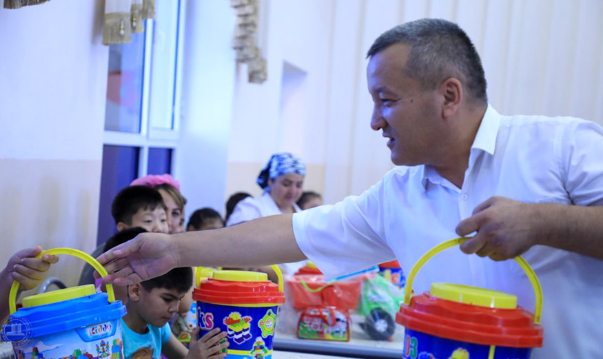 Шундан сўнг интернат уйида тарбияланаётган ўғил-қизларга спорт инвентарлари, турли хилдаги ўйинчоқ ва совғалар тақдим этилди.