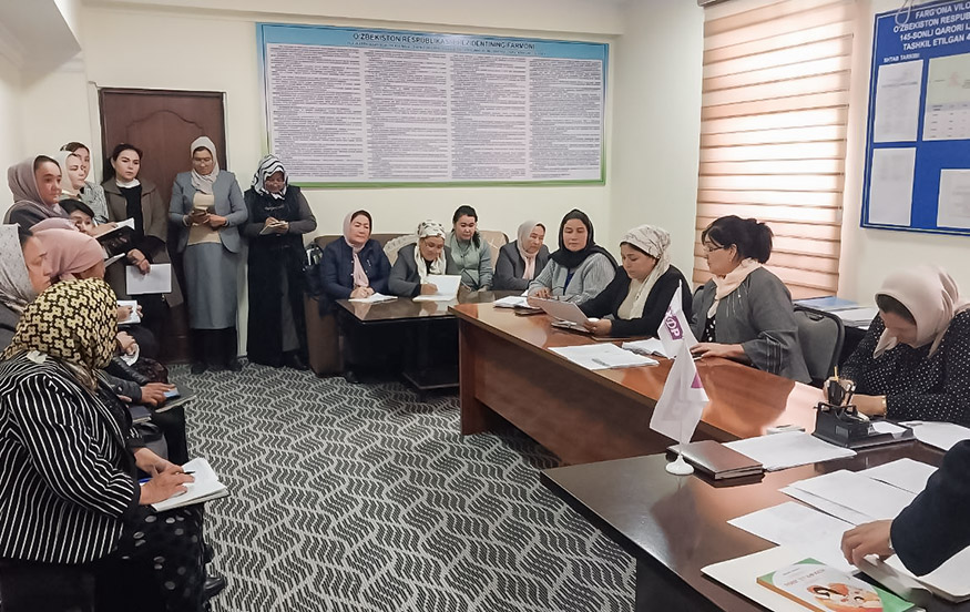 ЎзХДП Учкўприк туман кенгаши томонидан Халқ депутатлари вилоят кенгаши депутати Г. Жўраева иштирокида эрта никоҳ, қариндошлар ўртасидаги никоҳларнинг олдини олиш, “Соғлом оила-соғлом жамият” шиори остида оилаларни мустаҳкамлаш, нотинч оилалардаги муҳитни соғломлаштиришга масалаларига бағишланган учрашув ўтказилди.