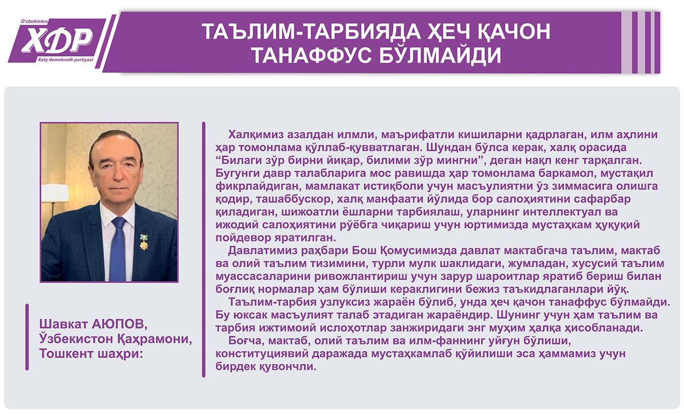 Президентимиз мақоласида ўзимиз учун теран англаш, мағзини чақиш ва моҳиятини бошқаларга очиб бериш лозим бўлган жиҳатлар жуда кўп. Зеро, “Ҳар биримиз кучли бўлсаккина ШҲТ кучли бўлади” шиори ташкилот учун умумий экани ва муштарак мақсадларни тўла ифода этишига мақолада урғу берилган...